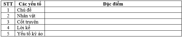 Thảo luận về các đặc điểm của truyền thuyết và hoàn thiện theo bảng mẫu sau: