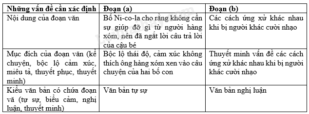 Đọc kĩ hai đoạn văn rồi điền vào bảng đã cho.
