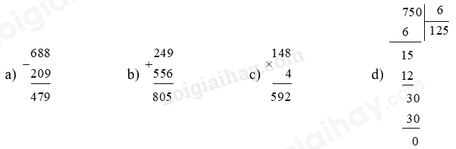– Cộng hoặc trừ các chữ số thẳng cột lần lượt từ phải sang trái