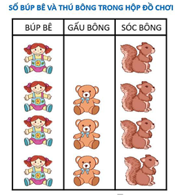 Số gấu bông và sóc bông có trong hộp là: