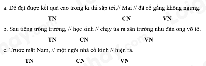 Câu 2: Xác định trạng ngữ, chủ ngữ và vị ngữ cho các câu sau: