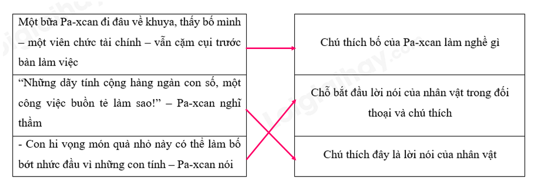 Em đọc kĩ các câu văn ở cột bên trái và xác định tác dụng của dấu gạch ngang được sử dụng trong câu để nối cho phù hợp.