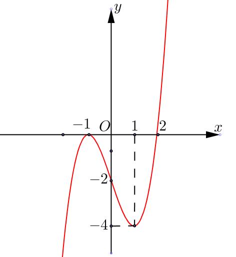 Câu 16 : Cho hàm số \(f\left( x \right)\) có đạo hàm liên tục trên R và có đồ thị của hàm \(y = f’\left( x \right)\) như hình vẽ. Xét hàm số \(g(x) = f\left( {2 – {x^2}} \right)\). Mệnh đề nào dưới đây đúng ?