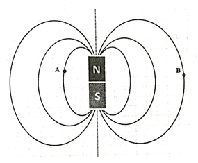 Cho thanh nam châm có các từ cực như hình vẽ, em hãy chỉ ra chiều của các đường sức từ tại điểm A, B?