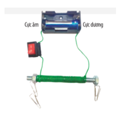 Khi có dòng điện chạy qua cuộn dây thì đinh sắt lại hút được kẹp giấy vì khi đó đinh sắt giống như nam châm
