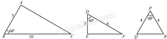Xét \(\Delta ABC\) và \(\Delta EDF\) có: \(\left\{ {\begin{array}{*{20}{l}}{\widehat {ABC} = \widehat {EDF} = {{60}^0}}\\{\frac{{AB}}{{BC}} = \frac{{DE}}{{EF}} = \frac{1}{2}}\end{array}} \right.\) suy ra $\Delta ABC\backsim \Delta EDF$ (c.g.c)