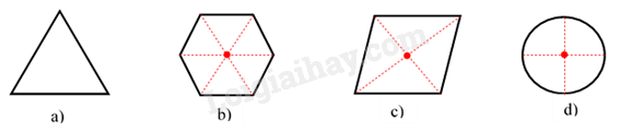 Các hình có tâm đối xứng là hình lục giác, hình bình hành, hình tròn.