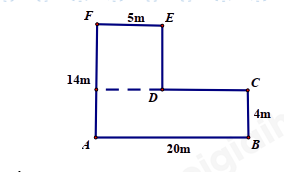 Bài 4: (2,0 điểm) Một mảnh sân nhà có hình dạng và kích thước như hình vẽ dưới đây.