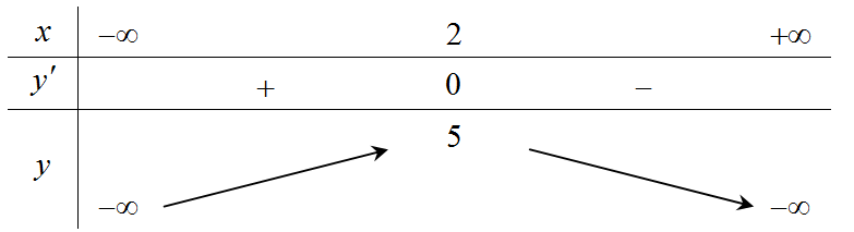 Hàm số đồng biến trên \(( – \infty ;2)\) và nghịch biến trên \((2; + \infty )\).