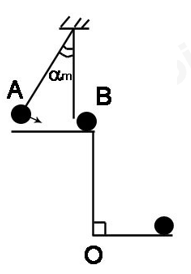 Một con lắc như hình vẽ, l=1m, bi A nặng m=100g. Kéo con lắc lệch góc αm=300 rồi buông tay ra. Bỏ qua mọi ma sát, cho g=9,8m/s2.