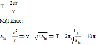 Một vật chuyển động theo đường tròn bán kính r=10cm với gia tốc hướng tâm 4