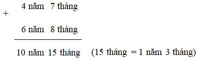 Vậy 4 năm 7 tháng + 6 năm 8 tháng = 11 năm 3 tháng.