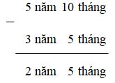 Vậy 5 năm 10 tháng – 3 năm 5 tháng =  2 năm 5 tháng.
