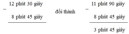 Vậy 12 phút 30 giây –  8 phút 45 giây = 3 phút 45 giây.
