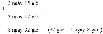 Vậy 5 ngày 15 giờ + 3 ngày 17 giờ = 9 ngày 8 giờ.