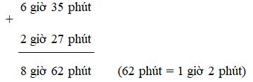 Vậy 6 giờ 35 phút + 2 giờ 27 phút = 9 giờ 2 phút.