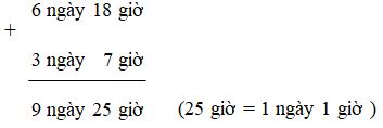 Vậy 6 ngày 18 giờ + 3 ngày 7 giờ = 10 ngày 1 giờ.