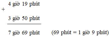 Vậy 4 giờ 19 phút + 3 giờ 50 phút = 8 giờ 9 phút.