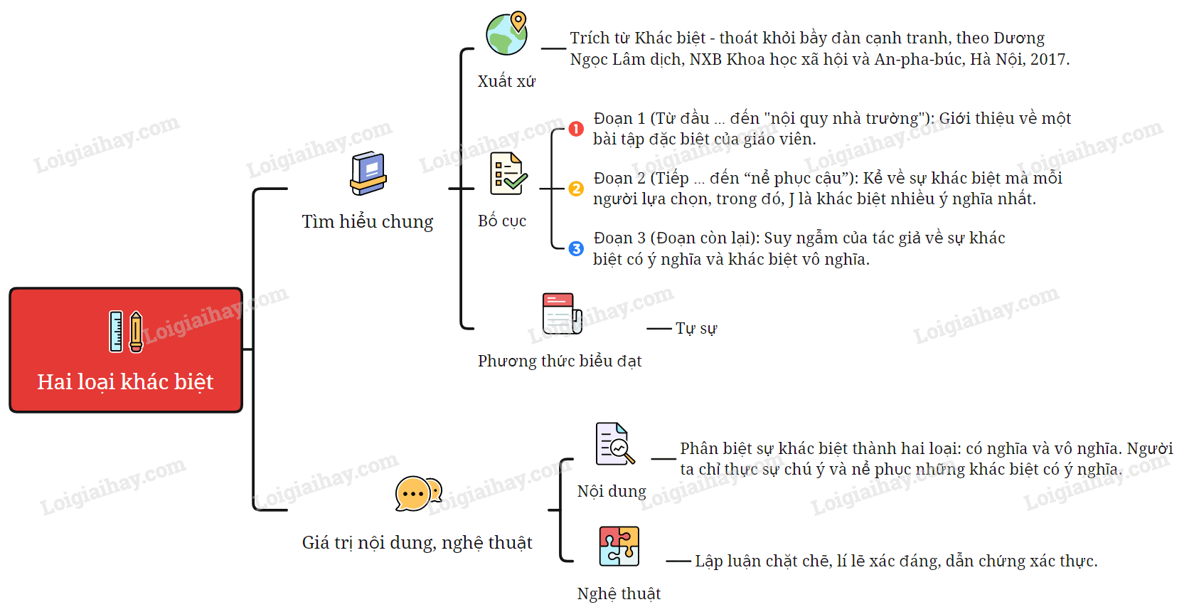 Sơ đồ tư duy đoạn trích “Hai loại khác biệt”: