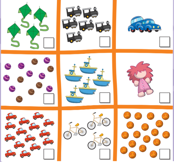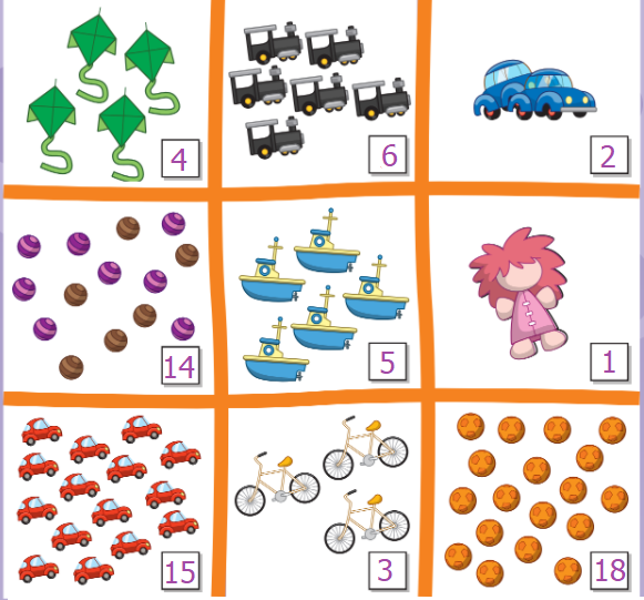 (Có bao nhiêu quả bóng (màu cam)? – Mười tám quả bóng.)