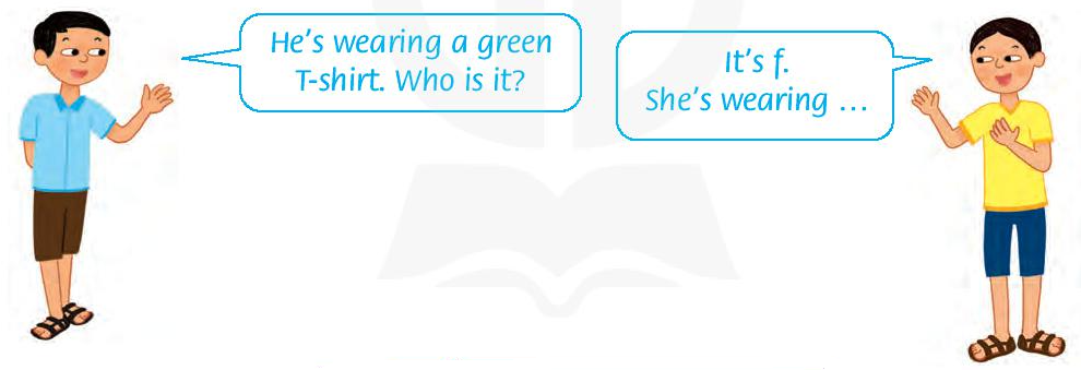 (Anh ấy / Cô ấy đang mặc ____ .)