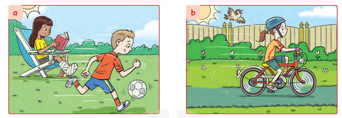 1. Listen and write a or b. 2. Look and say. 3. Say what you can do. 4. Write about what you and your friends can do.