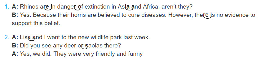 (Đọc các đoạn trao đổi sau. Quyết định xem ở đâu âm nối /r/ được xảy ra khi nói nhanh, trôi chảy.)