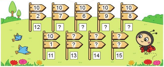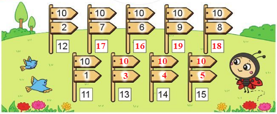 10 + 1 = 11                    10 + 4 = 14                    10 + 9 = 19
