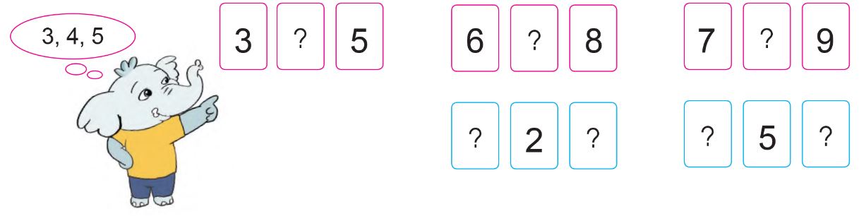 Quan sát ví dụ mẫu, đếm và viết tiếp các số thích hợp: