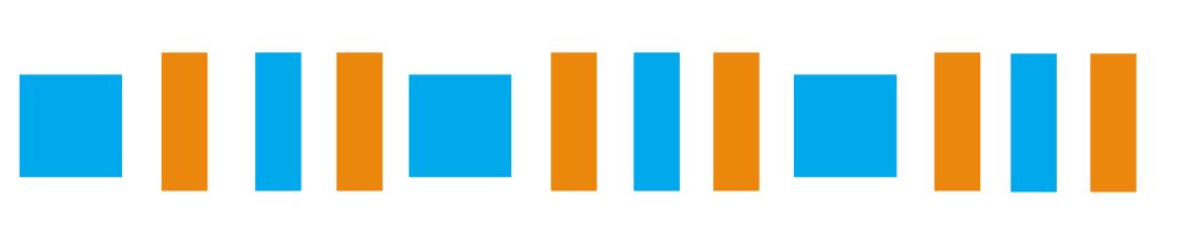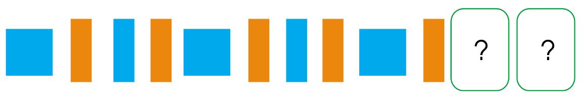 b) Các hình được sắp xếp theo thứ tự: hình vuông xanh, hình chữ nhật cam, hình chữ nhật xanh, hình chữ nhật cam rồi tiếp tục lặp lại như vậy: