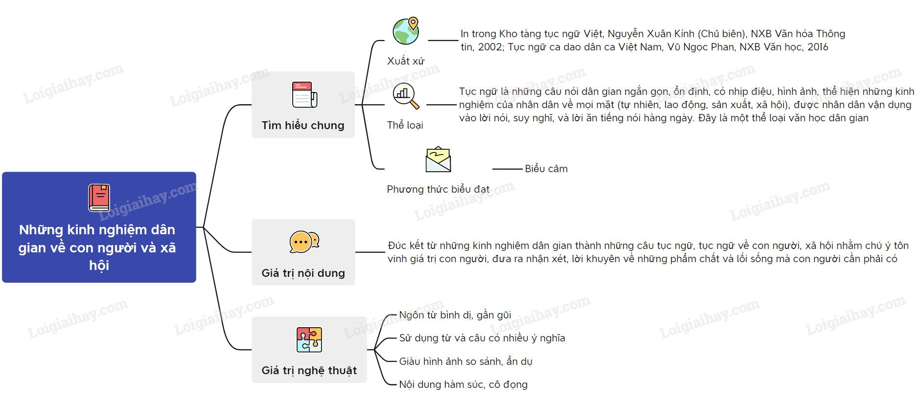 Sơ đồ tư duy văn bản Những kinh nghiệm dân gian về con người và xã hội: