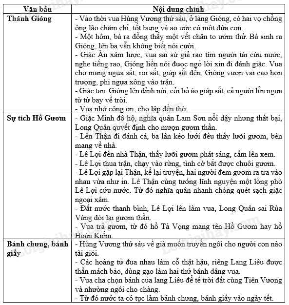 Dựa vào bảng sau hãy tóm tắt nội dung của ba văn bản.
