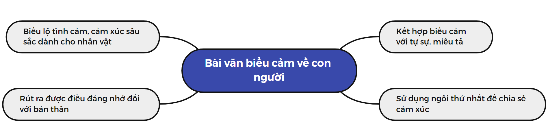 Nhớ lại kiến thức đã học, hoàn thành sơ đồ đặc điểm của bài văn biểu cảm (về con người).
