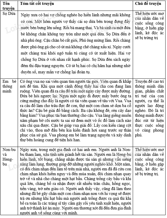 Đọc lại 3 truyện đã học ở tuần 2 và hoàn thiện bảng.