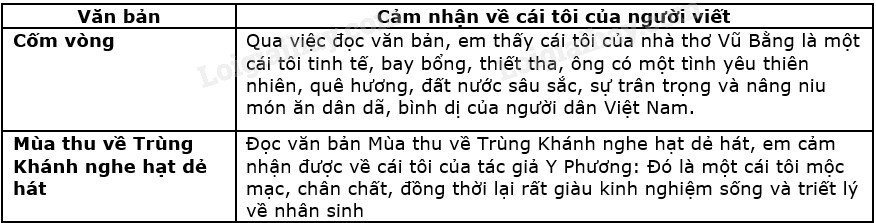 Dựa vào phần tri thức Ngữ văn và suy nghĩ của bản thân em, cảm nhận về cái “tôi” của tác giả và điền vào bảng