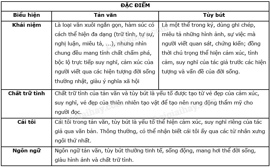Tóm tắt các đặc điểm của thể loại tản văn, tùy bút mà em đã học.