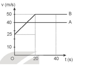 Hình II.3 là đồ thị vận tốc – thời gian của hai ô tô A và B cùng chạy theo một hướng trong 40 s. Xe A vượt qua xe B tại thời điểm t = 0. Để bắt kịp xe A, xe B tăng tốc trong 20 s để đạt vận tốc 50 m/s.