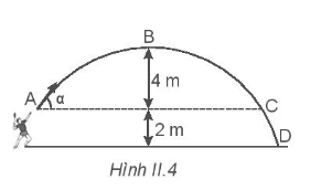 Hình II.4 vẽ quỹ đạo của một quả cầu lông được đánh lên với vận tốc ban đầu v0 = 10 m/s ở độ cao 2 m so với mặt đất. Bỏ qua sức cản của không khí và lấy g = 9,8 m/s2.