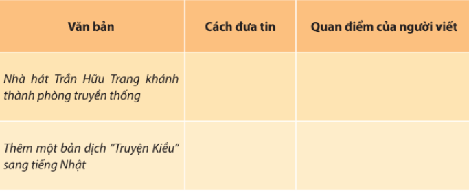 Nêu một số nét tương đồng và khác biệt về cách đưa tin và sự bộc lộ quan điểm của người viết trong một bản tin theo mẫu dưới đây (làm dưới đây):
