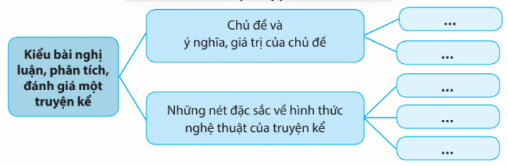 Kẻ vào vở sơ đồ theo mẫu sau và điền những đặc điểm của kiểu văn bản nghị luận phân tích, đánh giá một truyện kể.
