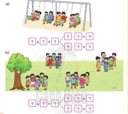 Nêu phép nhân và phép chia thích hợp với mỗi tranh vẽ: