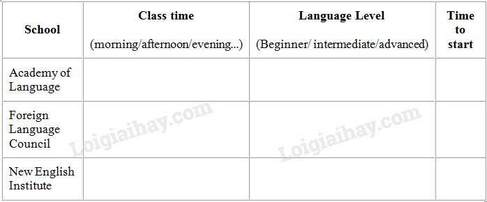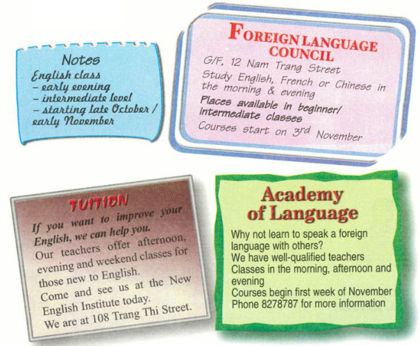 (Ghi thông tin về các lớp tiếng Anh từ các bài quảng cáo).