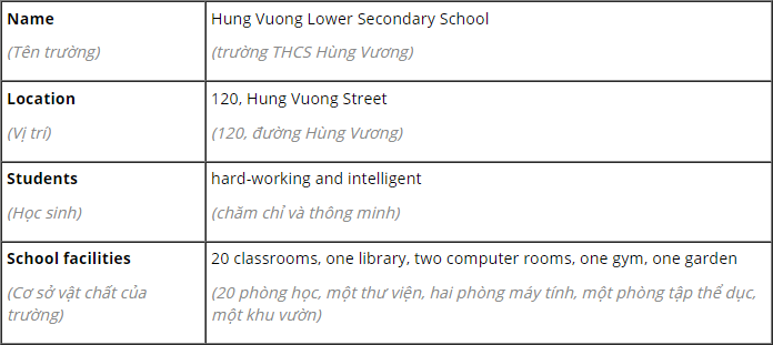1. The full name of the school is Hung Vuong Lower Secondary School.