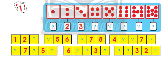 – Đếm số chấm tròn trên mỗi hình vuông rồi điền số thích hợp vào ô trống.