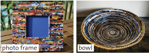 5. Work in pairs. Look at the two objects recycled from magazines. Use comparative adverbs to describe and compare them.