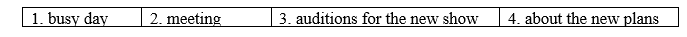 (Tôi có buổi thử giọng cho chương trình mới ngày hôm nay, nhớ không?)