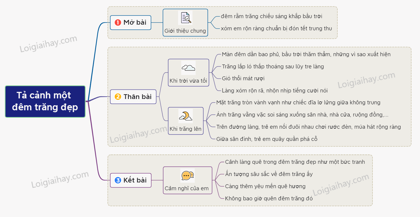 Sơ đồ tư duy dàn ý bài văn tả cảnh một đêm trăng đẹp