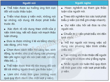 Những khía cạnh cần đánh giá, rút kinh nghiệm sau khi thảo luận.