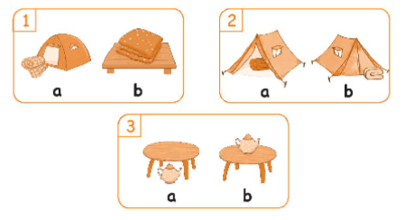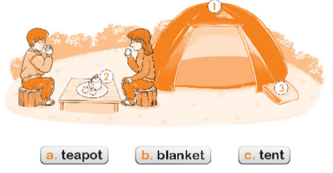 (Kế hoạch: Đồ lại và tô màu cái lều, cái chăn, và ấm trà. Kể cho các bạn của bạn nghe về chúng.)