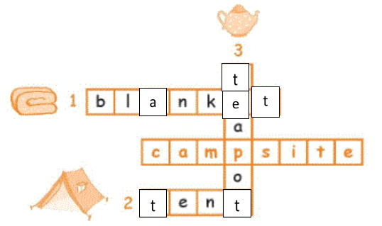 7. Project: Trace and colour the tent, the blanket, and the teapot. Colour the picture. Tell your friends about them.